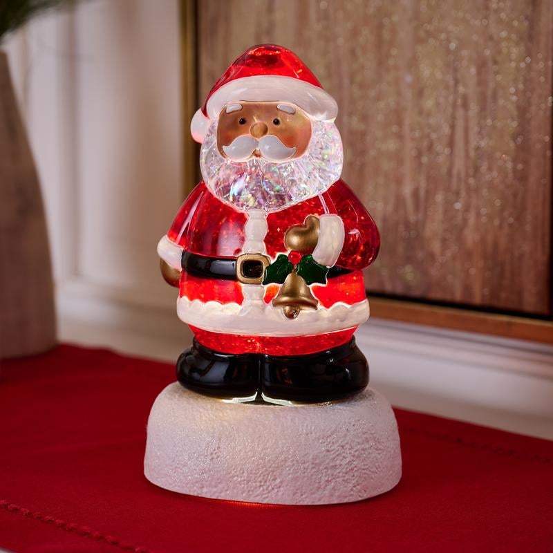Illuminated with a soft glow and captivating with swirling glitter, this sweet holiday figure brings on the cheer!
